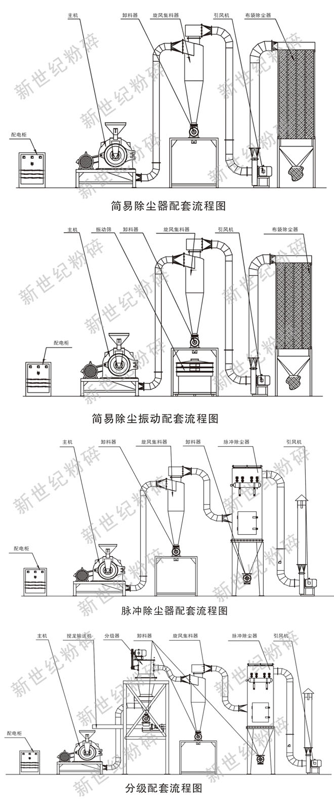 9、粉碎后的物料是從機(jī)殼下腔排出,可由布袋直接收集或連接集料(集料分級(jí))裝置收集。